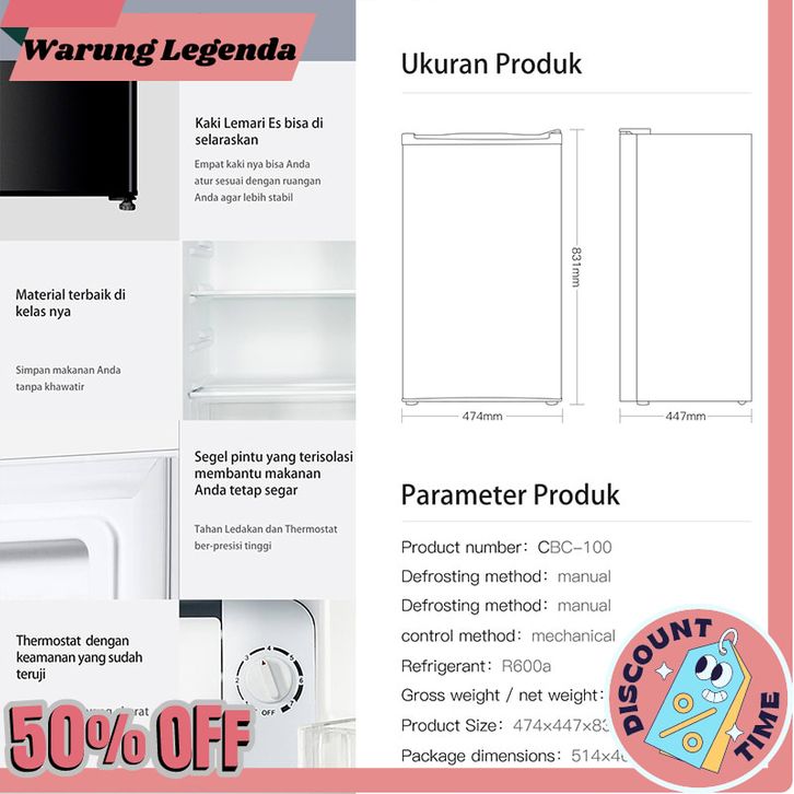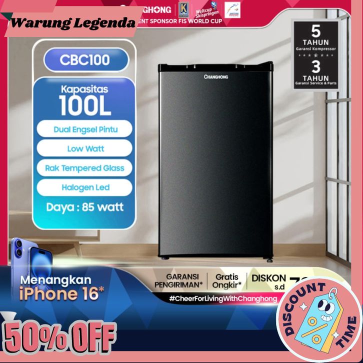 kulkas 2 pintu Changhong Kulkas 1 pintu Refrigerator Kapasitas 100 Liter – CBC 100 Black kulkas 1 pintu