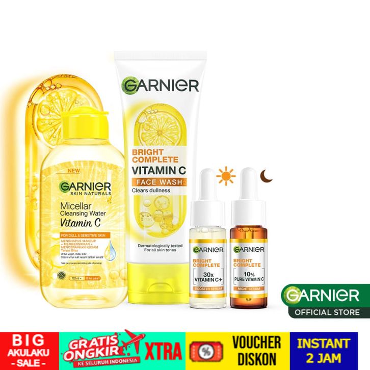 GRATIS ONGKIR Garnier Vitamin C Day & Night Starter Kit - Foam Cleanser 100ml + Micellar Vitamin C 125ml + Bright