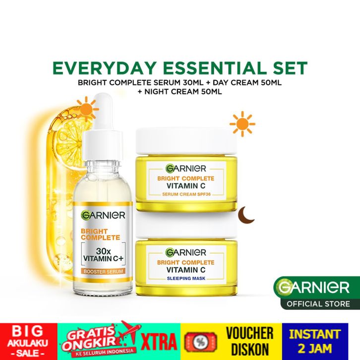 GRATIS ONGKIR Paket Skincare Garnier Bright Complete Vitamin C Daily Set Untuk Mencerahkan Wajah / Serum brightening,