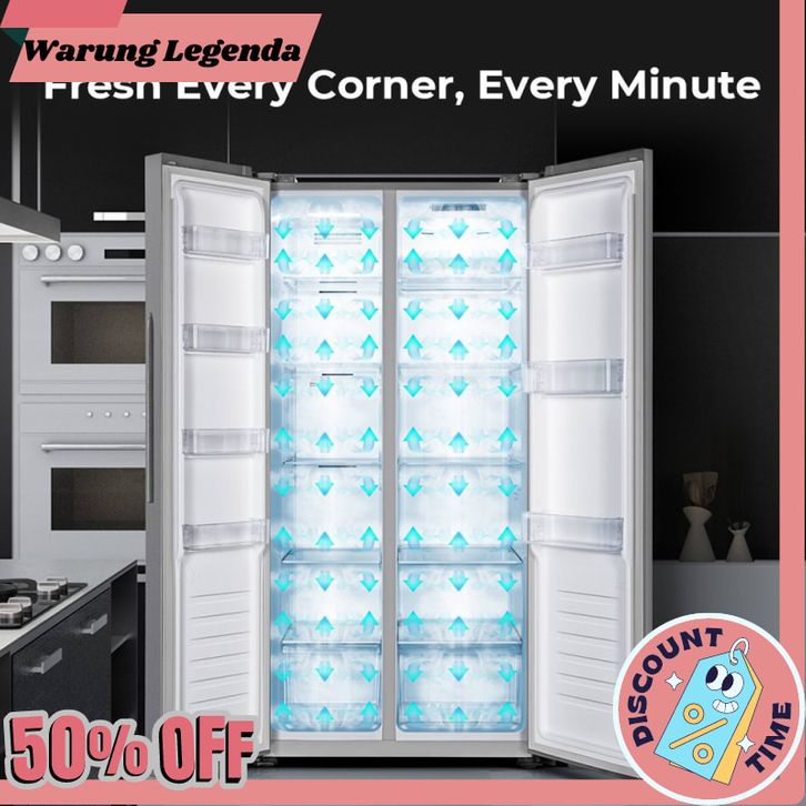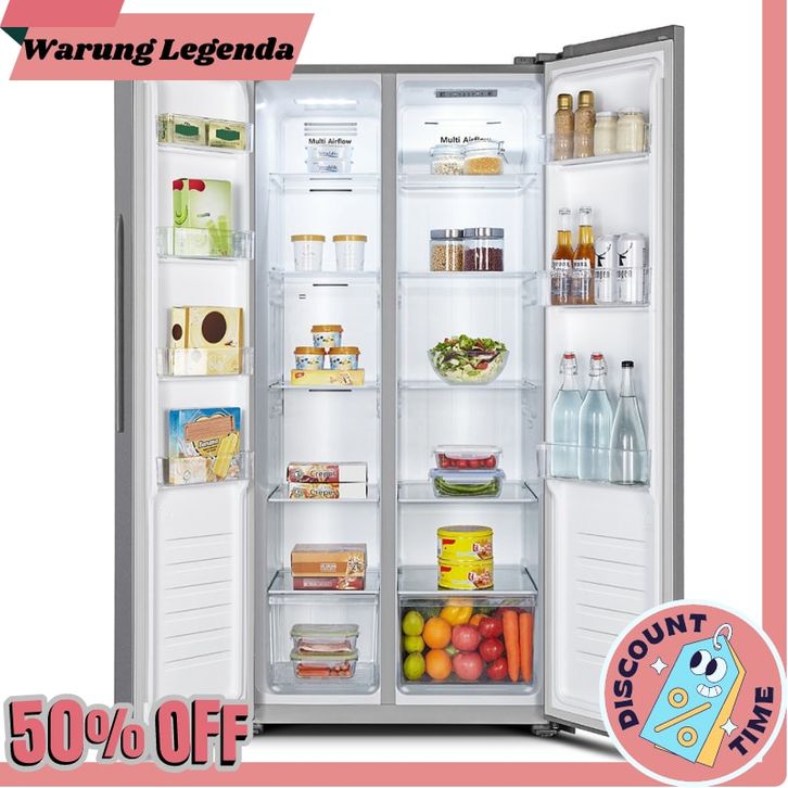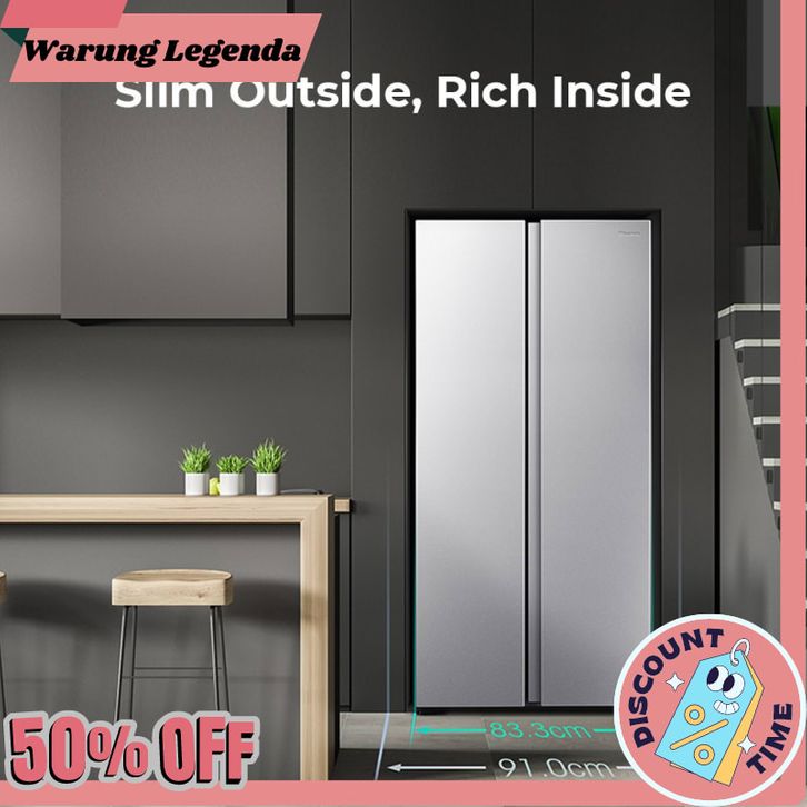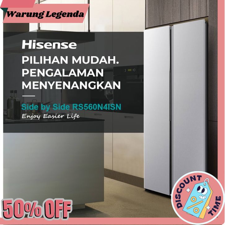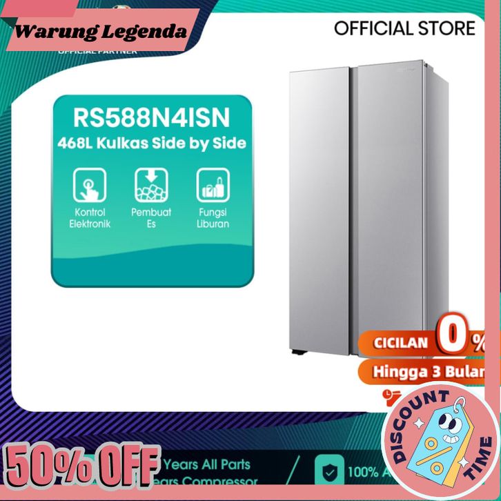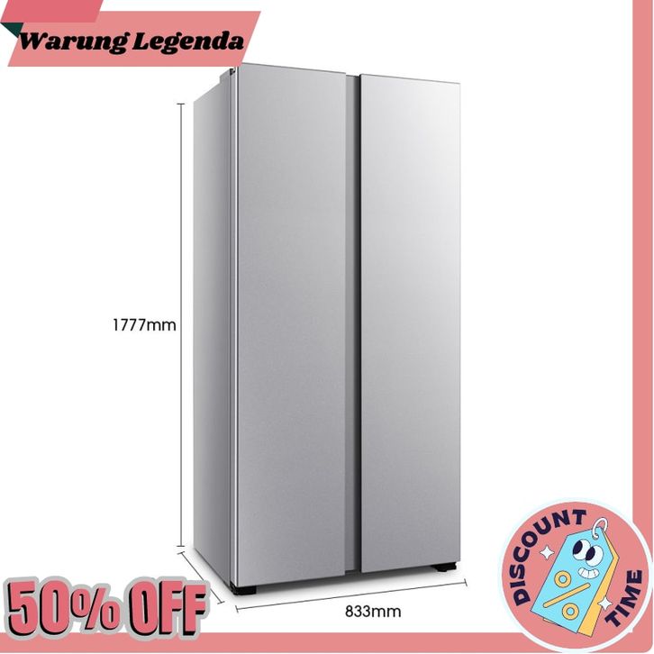 kulkas 2 pintu Hisense Kulkas 2 Pintu Refrigerator Lemari Es Side by Side Kapasitas 468L RS588N4IGN Silver/ Perak
