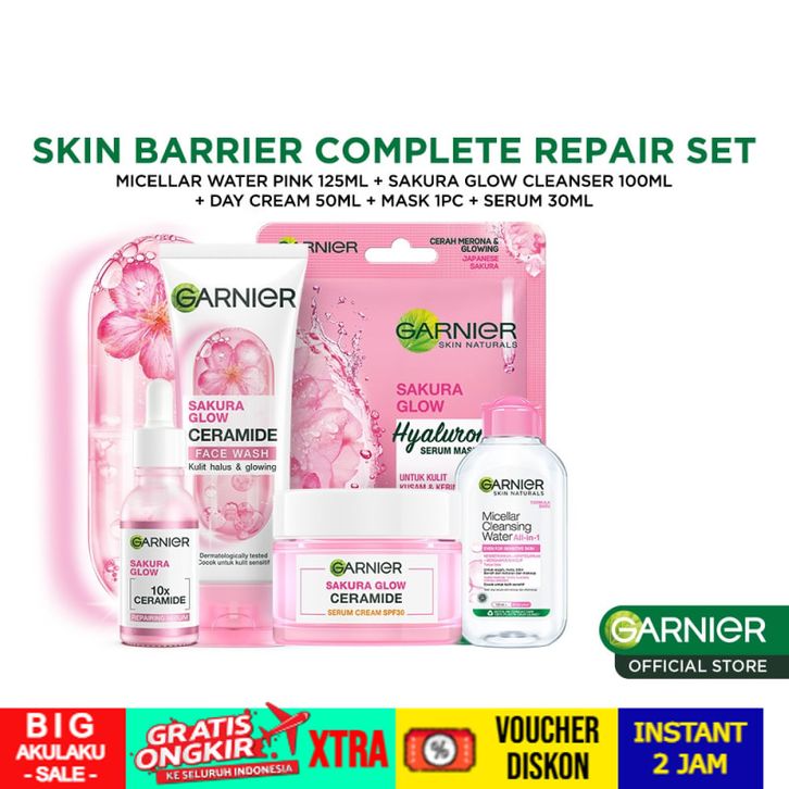 GRATIS ONGKIR Paket Skincare Garnier Sakura Glow Skin Barrier Complete Set Untuk Glowing Maksimal & perbaiki skin /