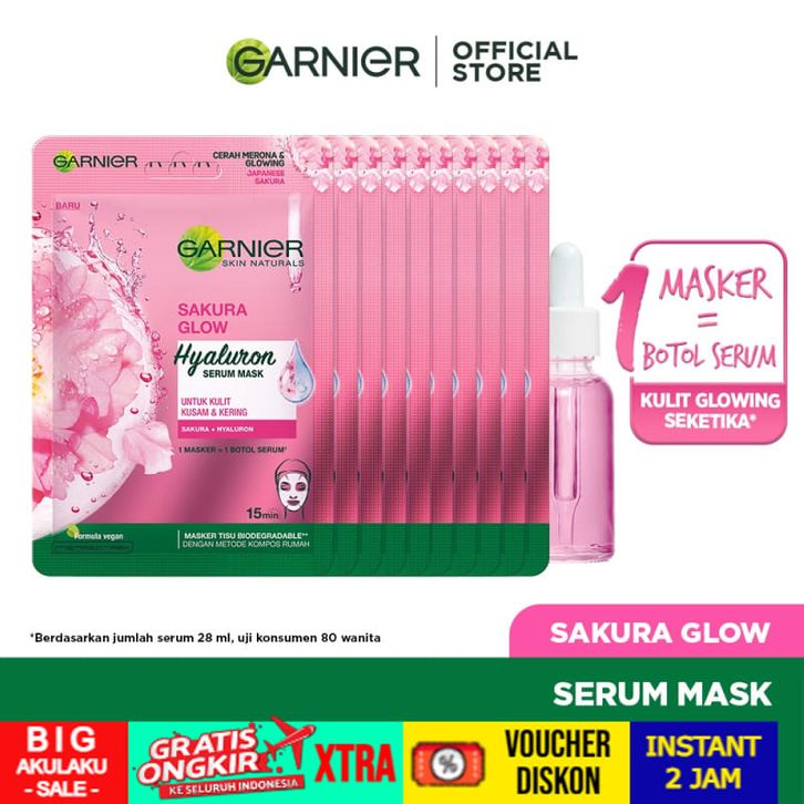 GRATIS ONGKIR Garnier Serum Mask Sakura Glow Skin Care x 10 Pcs - Masker Wajah Skincare Glowing (Sakura White) TERLARIS