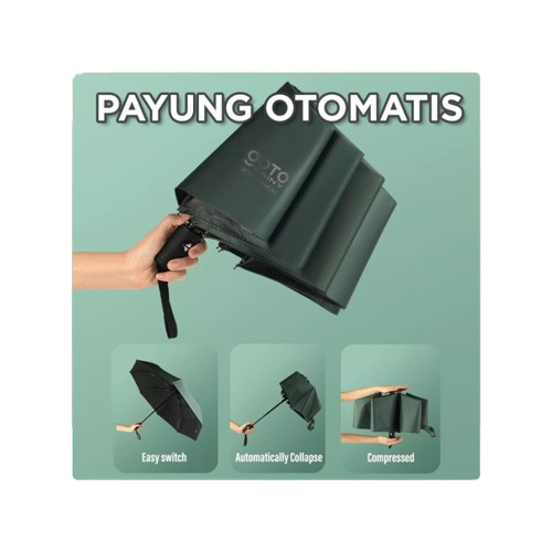 PROMO FREE ONGKIR Goto Rainy Payung Umbrella Lipat Besar Polos Anti UV Otomatis