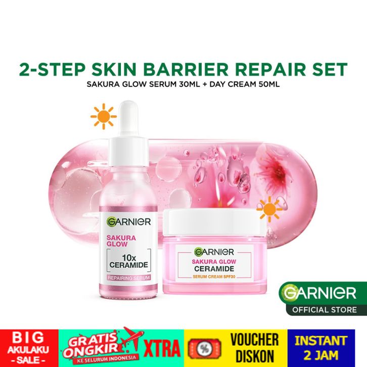 GRATIS ONGKIR Garnier Sakura Glow Day Kit 30x Booster Serum 30ml + Day Cream - Skincare Moisturizer Sakura White