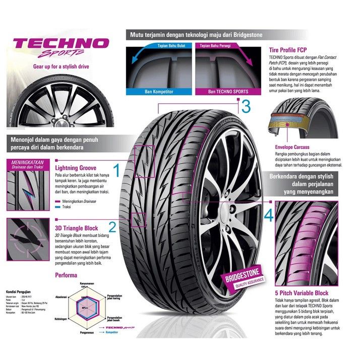 Ban Mobil Bridgestone Techno Sport 195/50 R16 Ban Mobil Ring 13 14 15 16 17 12 Original
