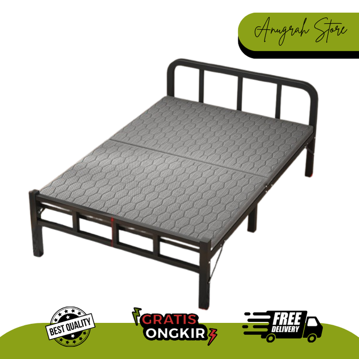 rak besi lipat 190x120cm tempat tidur lipat portable Kasur Lipat Tebal 10 CM Folding Bed Sudah Dirakit Termurah