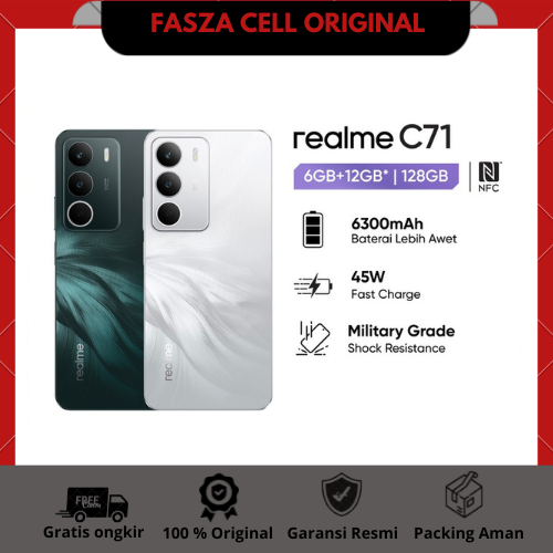 Handphone realme C71 6GB+12GB* |128GB (6300 Baterai | 45W Fast Charge | Military Grade Shock Resistance | NFC) [BL]