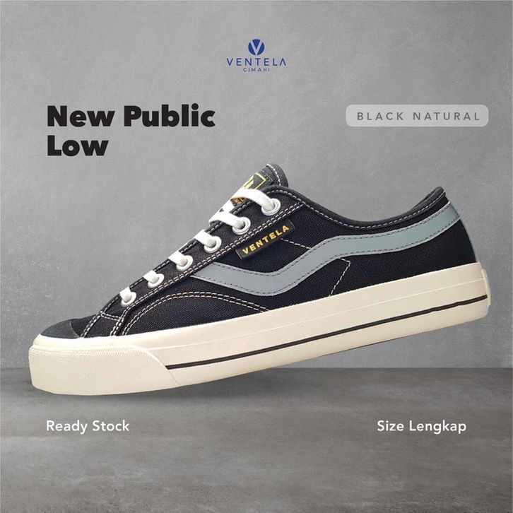 SEPATU VENTELA NEW PUBLIC LOW BLACK NATURAL ORIGINAL SNEAKER PRIA WANITA TERBARU