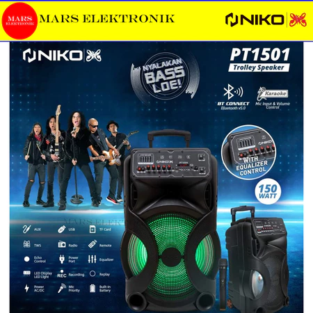 NIKO SPEAKER SLANK PT 1501- 15 INCHI - TROLLEY SPEAKER - FREE 1 MIC - SPEAKER PORTABLE NIKO - READY