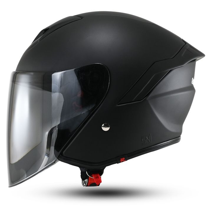 HELM HALF FACE AYRES TERBARU HELM COWOK SOLID KEKINIAN SNI VISOR SMOKE