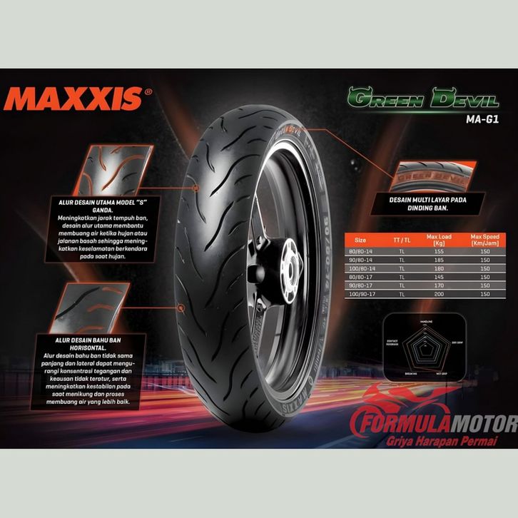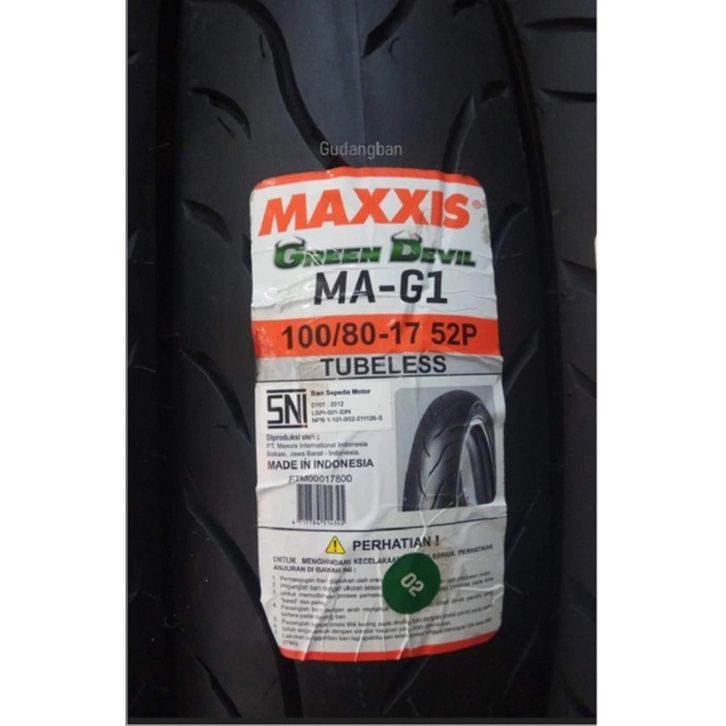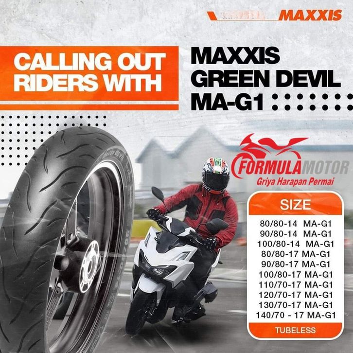 Ban Luar Motor Bebek Satria Maxxis Green Devil MA-G1 Uk 100/80-17 Ring 17 Tubeless Medium Soft Compound Produksi Terbaru