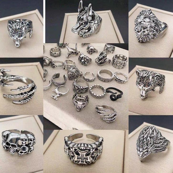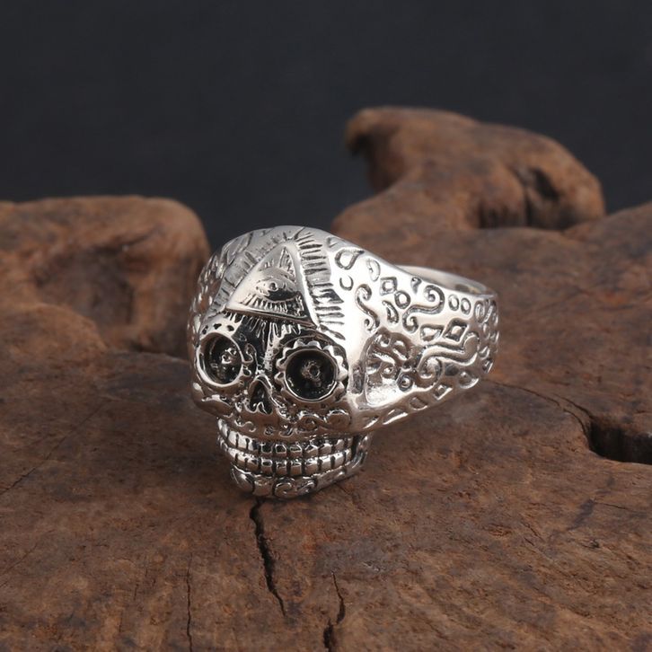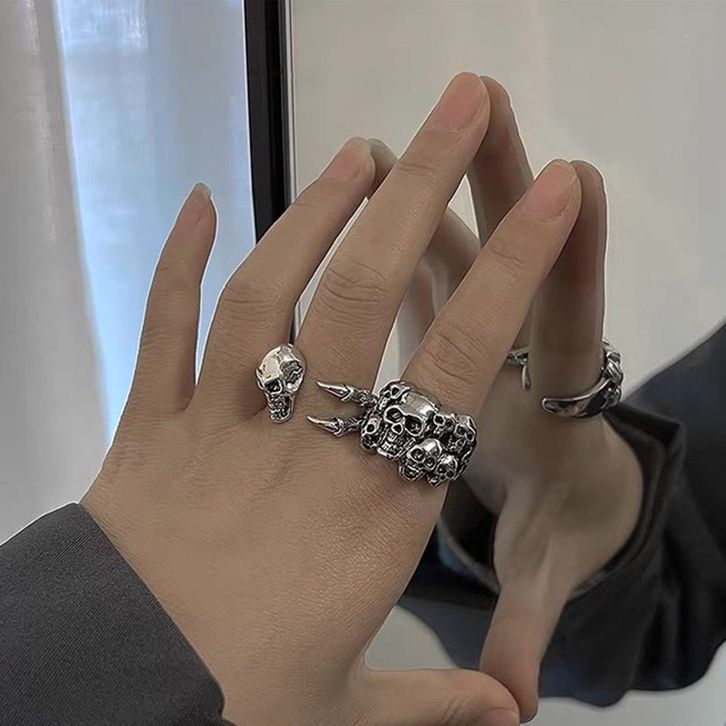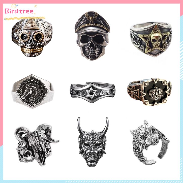 Murah Cincin Tengkorak Cross Ring Cincin Punk Titanium Pria Anti Karat Asli Cincin Pria Punk Retro Hip-hop Adjustable Ci