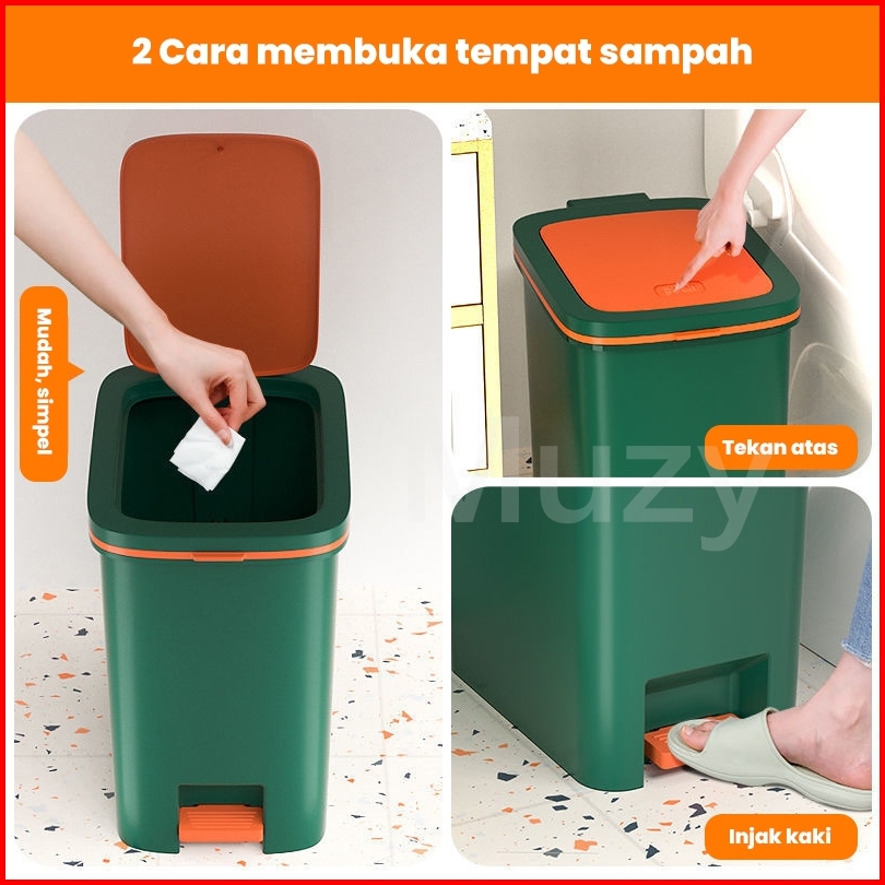 Muzy Tempat Sampah Injak Plastik Tertutup Tong Sampah 8l Kotak Sampah Trash Bin Dapur Kamar Mandi Ruang Tamu Hsb791