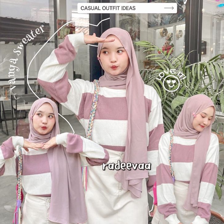 Sweater Crop Stripe Knit Atasan Rajut Wanita Motif Garis Oversize Atasan Lengan Panjang Wanita Rajut Lembut Premium