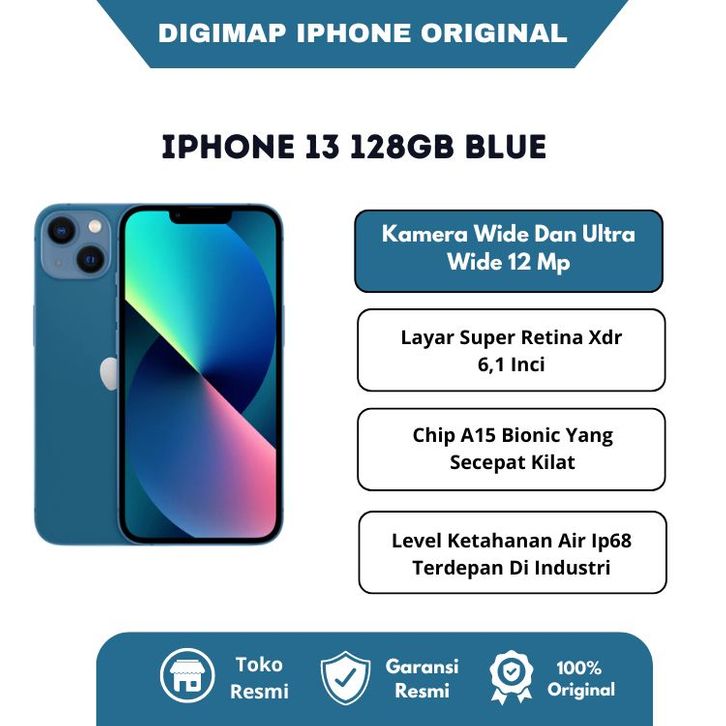 Iphone 13 128gb Blue Iphone 13 Ibox Layar Super Retina Xdr 6,1 Inci Chip A15 Bionic iOS 15 Original Official Store