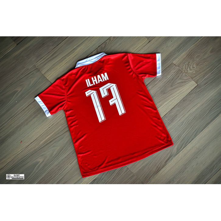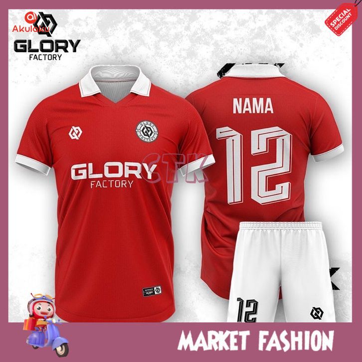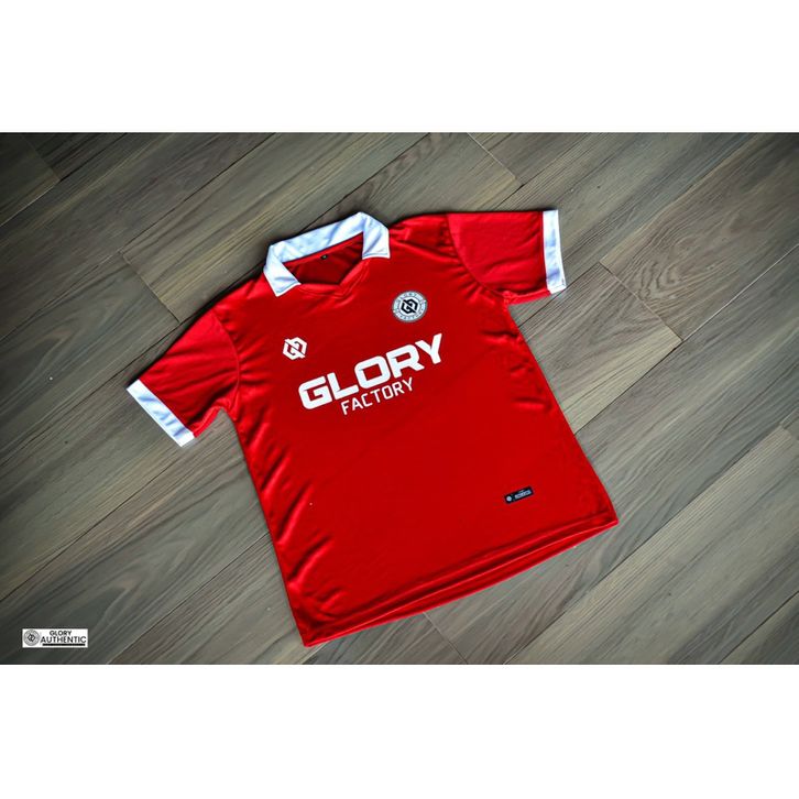 Baju Sepak Bola & Futsal Merah Kerah Sablon Polyplex Bahan Premium Dryfit Cepat Kering Nyaman Dipakai Sport