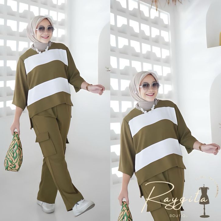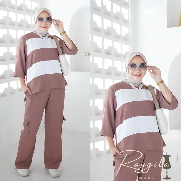 one set Blaster Cargo Crinkle Airflow Setelan Casual Wanita Setelan Lengan Panjang Bahan Fleece Lembut Nyaman Kekinian