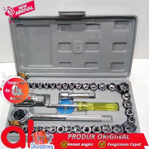 (MURAH) PAKET KUNCI RING + KUNCI PAS + KUNCI SOCK 40 PCS + KUNCI L + 4 PCS KUNCI T + GAGANG RACHET + OBENG