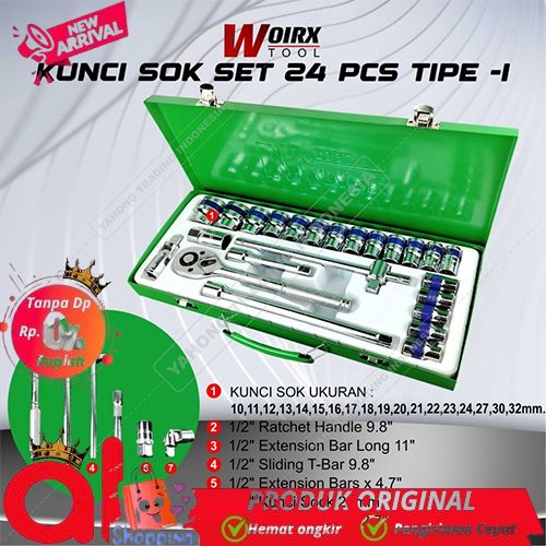 (MURAH) KUNCI SOK 1/2 INCH SET - SOCKET SET 24 PCS CHROME SOCK 32MM WRENCH RACHET SET