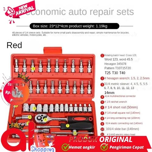 (MURAH) KUNCI SOCKET 46 PCS 1/4" + OBENG SHOCK TOOL KIT SET