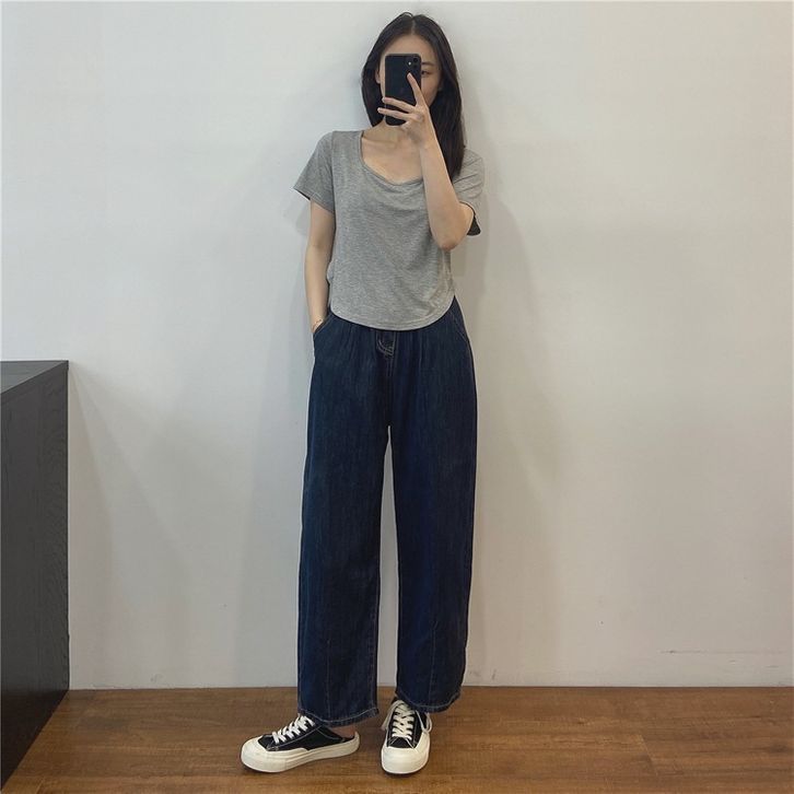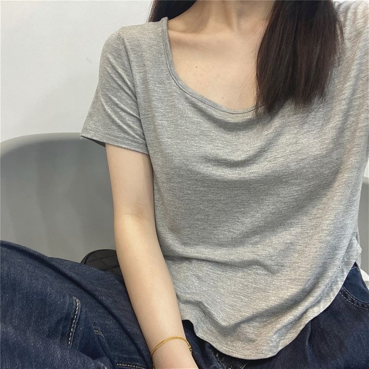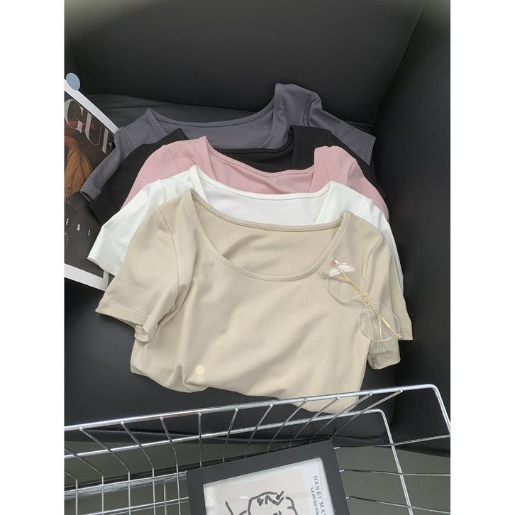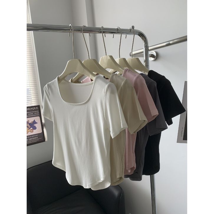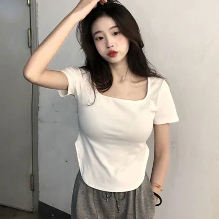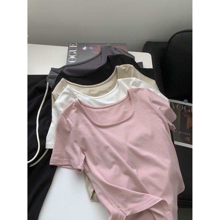 Baju Kaos Wanita Lengan Pendek Square Neck Short Sleeve Shirt T-shirt Spandek