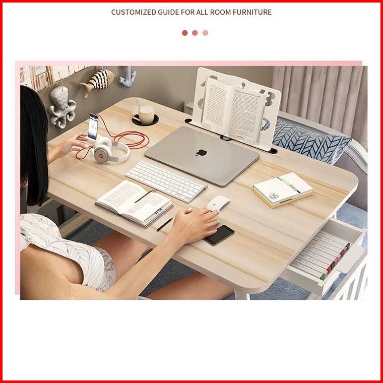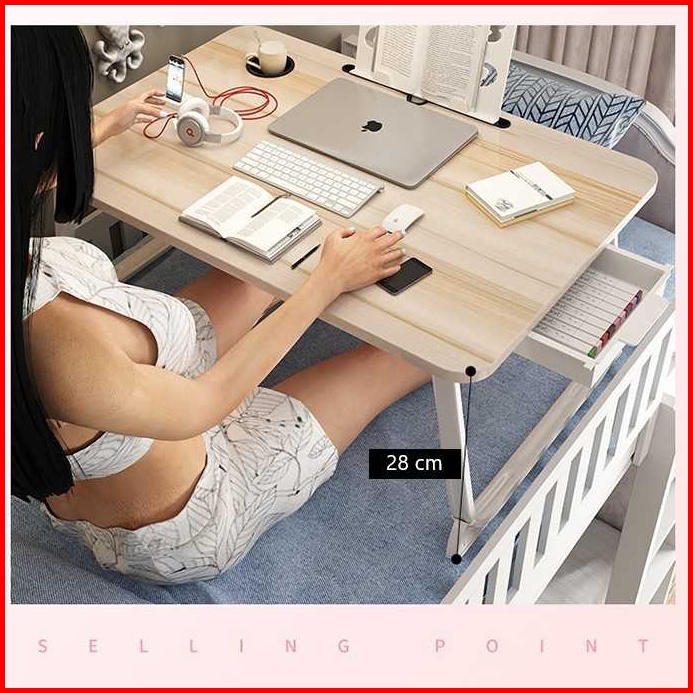 Boussac Meja Lipat Laptop Foldable Bed Table With Drawer Cup Holder - Bo-67