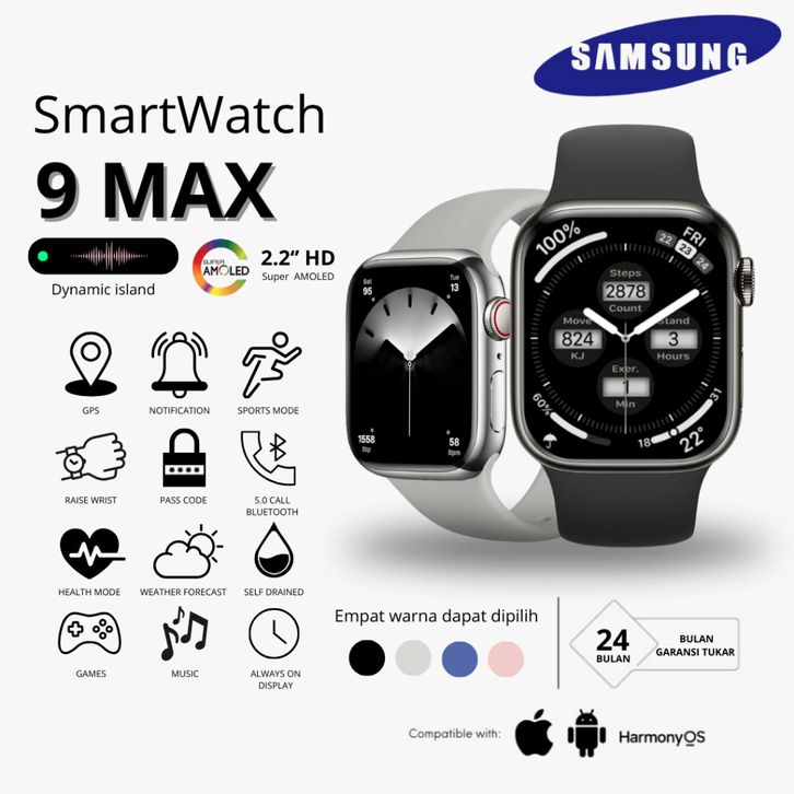 Jam Tangan SmartWatch Samsung 9 MAX PRO Pria Wanita jam amoled 2.19" Pemantauan Detak Jantung Oksigen Darah Pelacak