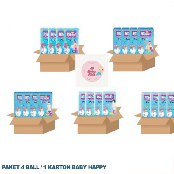 BABY HAPPY PANTS PAKET 4 BALL / 1 KARTON M32 L28 XL26 XXL24 S38+2