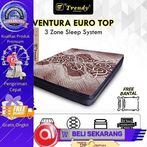 (Tanpa Dp) TRENDY VENTURA EURO TOP KASUR SPRING BED BONNELL SPRING -VACUUM PRESS ROLL-MATTRESS KASUR DALAM BOX