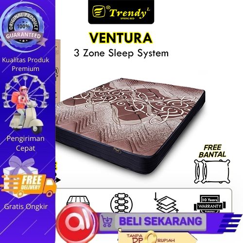 (Tanpa Dp) TRENDY VENTURA KASUR SPRING BED BONNELL SPRING - VACUUM PRESS ROLL - MATTRESS KASUR DALAM BOX