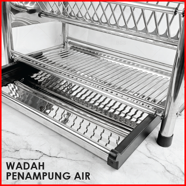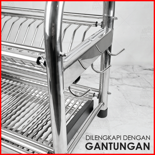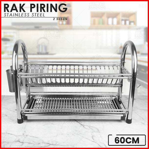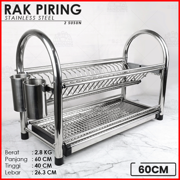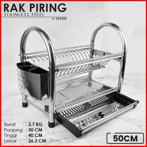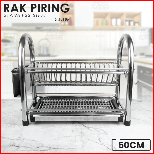 Rak Piring 50cm 60cm Stainless Steel Tebal Tempat Sendok Pisau 2 Susun
