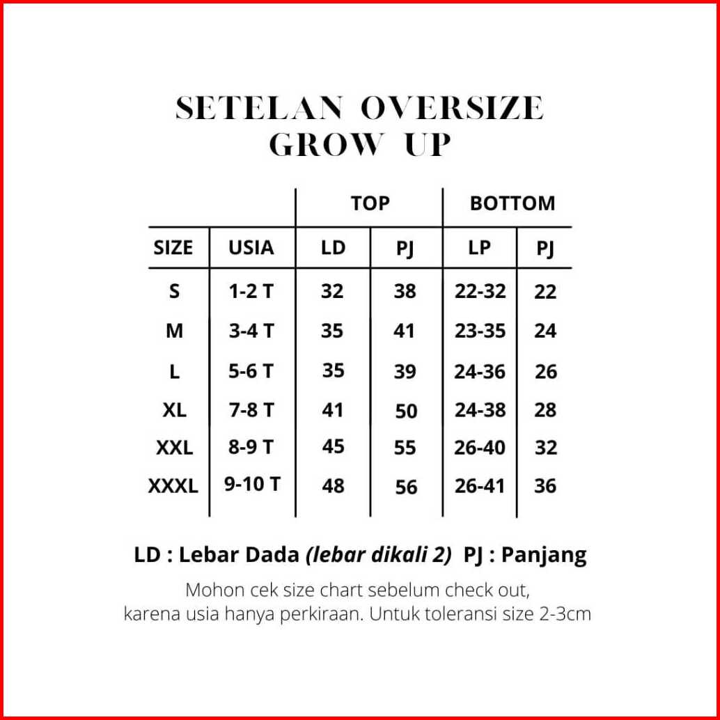 Krucilkuu-setelan Anak Oversize Grow Up Cotton Combed Umur 1-10 Tahun