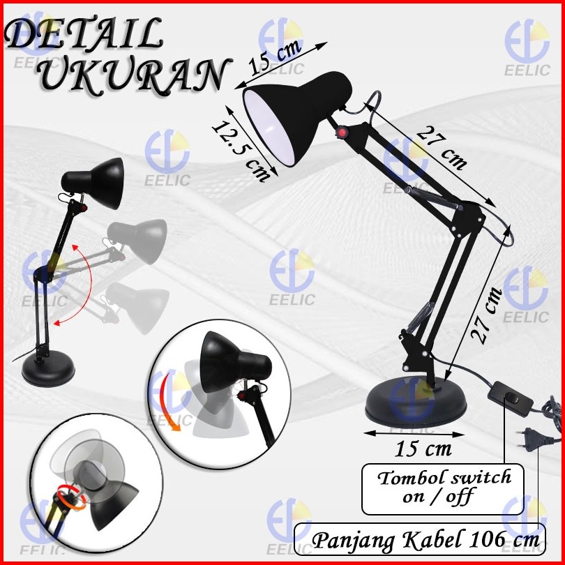 Eelic Lampu Meja Belajar Arsitek Desk Lamp Switch Kabel 1.8m Jm-800