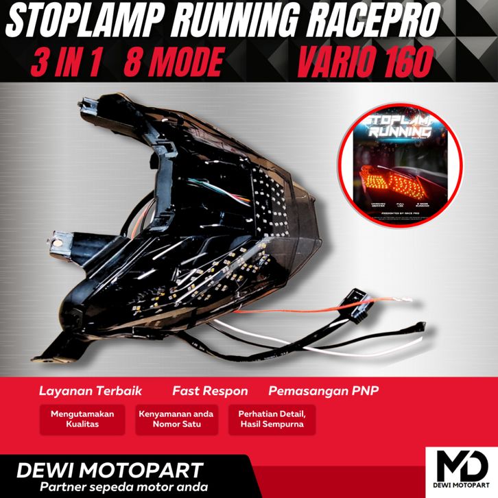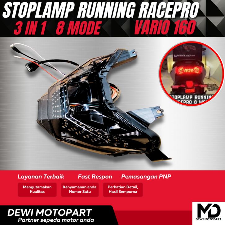 STOPLAMP RUNNING RACEPRO HONDA VARIO 160 3IN1 8 MODE RUNNING SEIN LAMPU BELAKANG RUNNING STOPLAMP