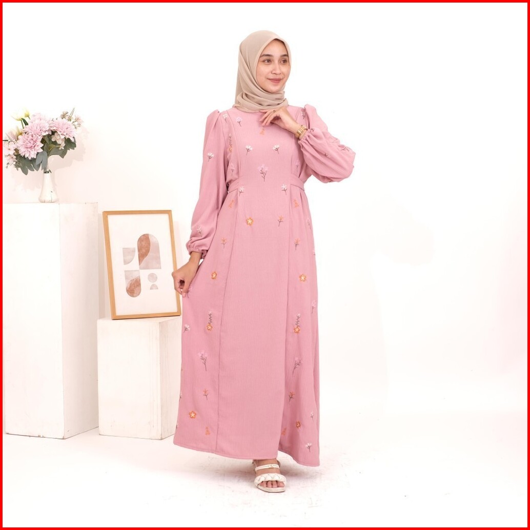 Najwa - Dress Lifia Wanita Embroidery Cringkle Airflow - Gaun Wanita