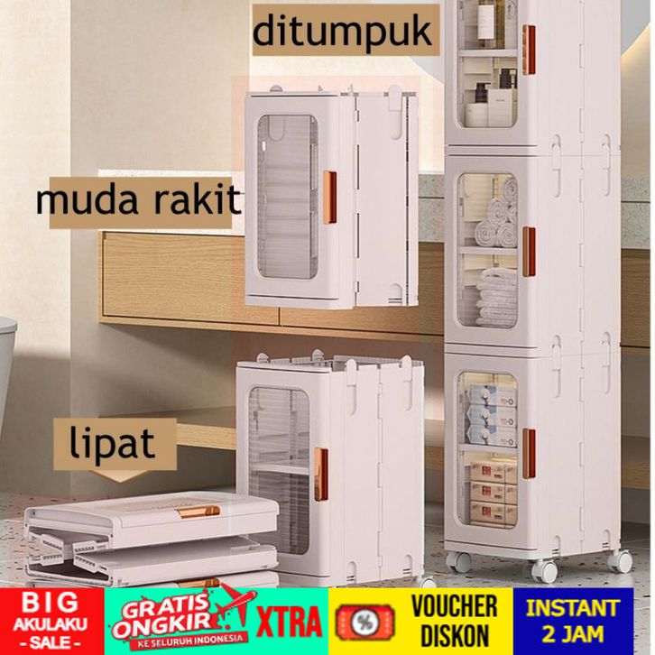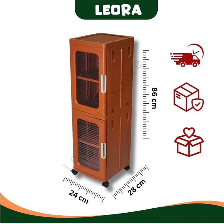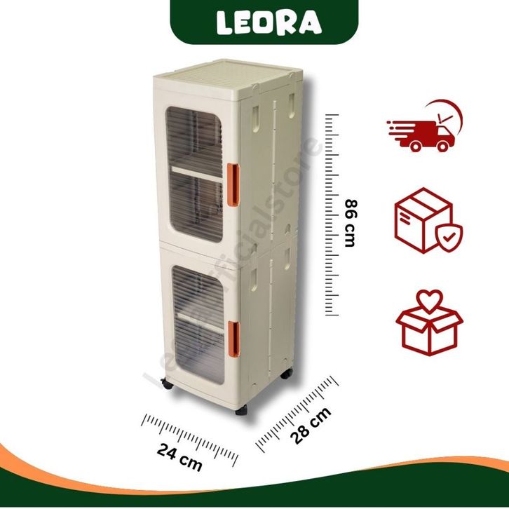 LEORA Lemari Lipat Plastik Lemari Pakaian Lemari Susun Kolong Lemari Serbaguna Rak Buku Toilet Dapur