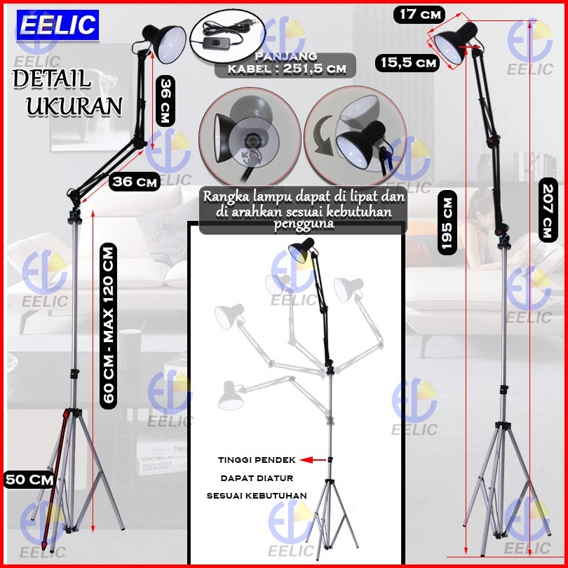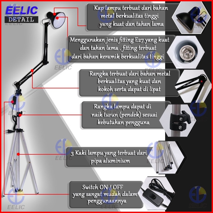 Eelic Elc-j019 Lampu Arsitek Standing Lamp Lampu Belajar Arsitek Model Berdiri Memiliki 3 Kaki