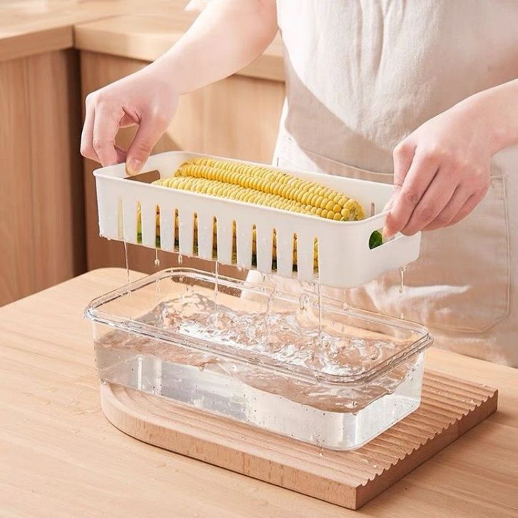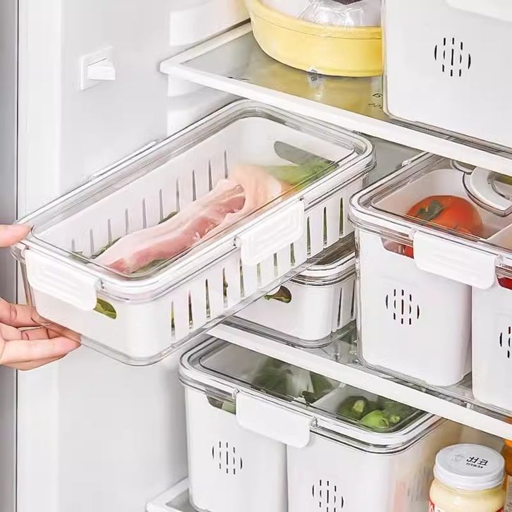 GRATIS ONGKIR Kontainer Kulkas Tempat Penyimpanan Makanan Dengan Saringan dan Tutup Transparan Penutup penyegelan