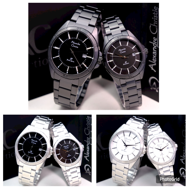 Jam Tangan Couple Alexandre Christie AC 1011 Stainless Steel Tanggal Aktif Original - Garansi Resmi 1 Tahun