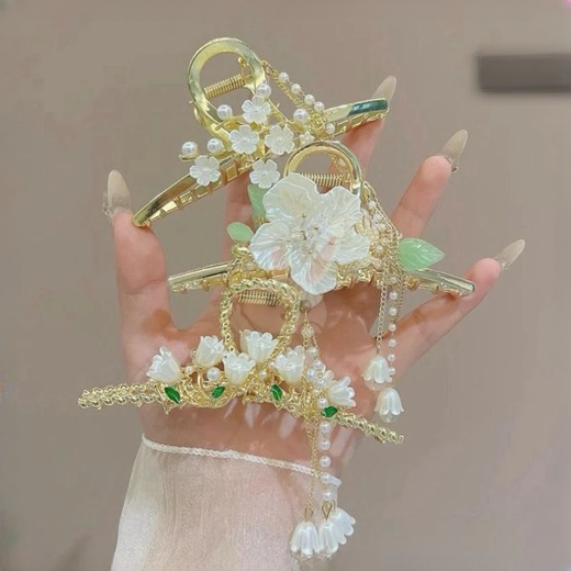 PROMO FREE ONGKIR Jepit Rambut Vintage Gold Motif Bunga Kupu-Kupu Rumbai Mutiara Bunga Peri Gaya Fashion Korea Import