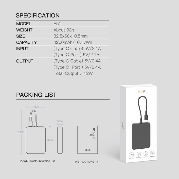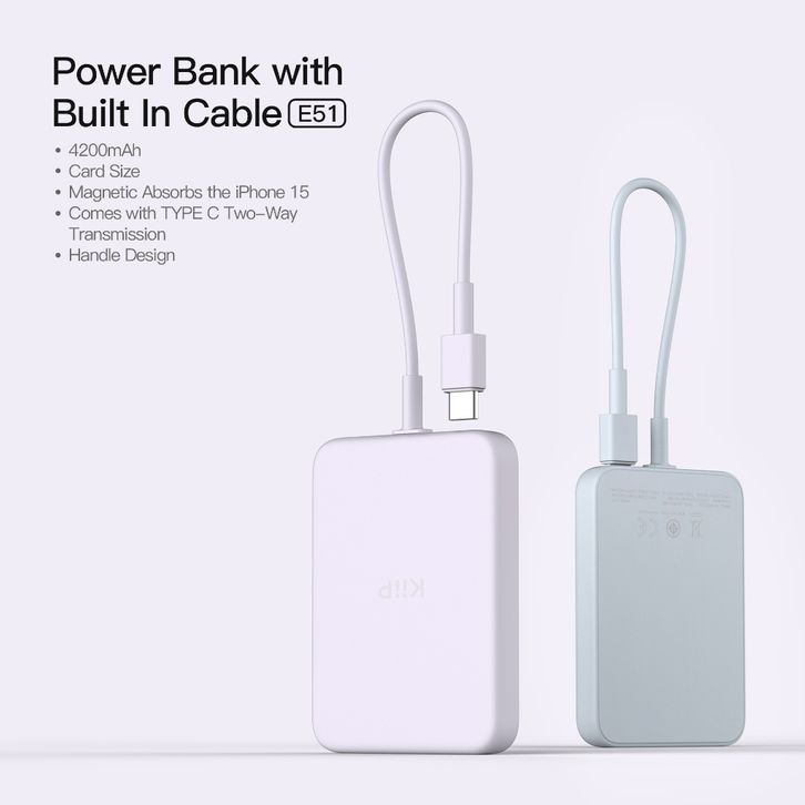 PowerBank Original KiiP Official Shop E51 Magnetic Power Bank Type-C Cable 4200mAh