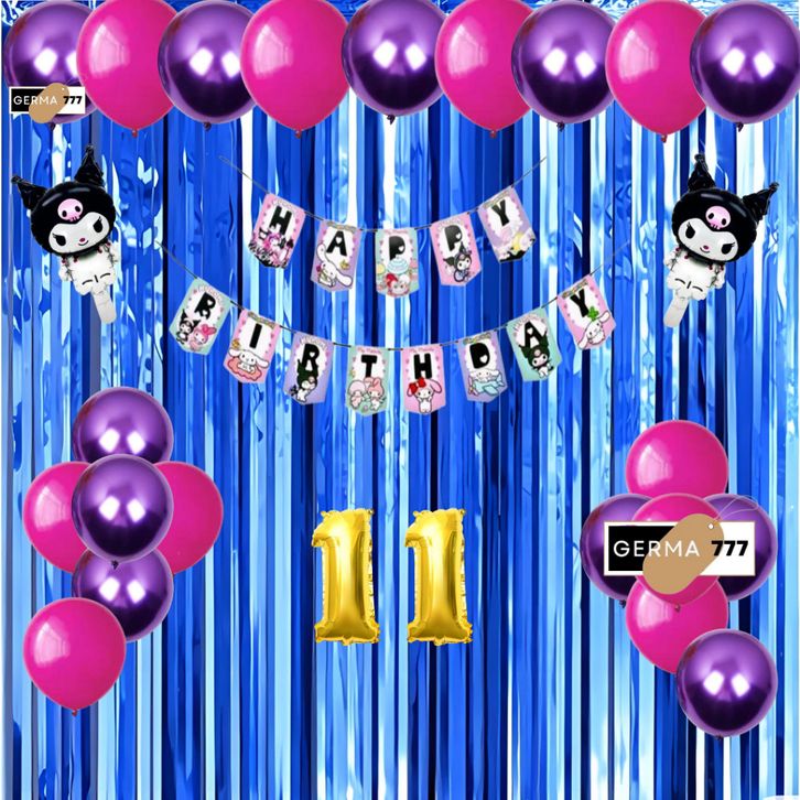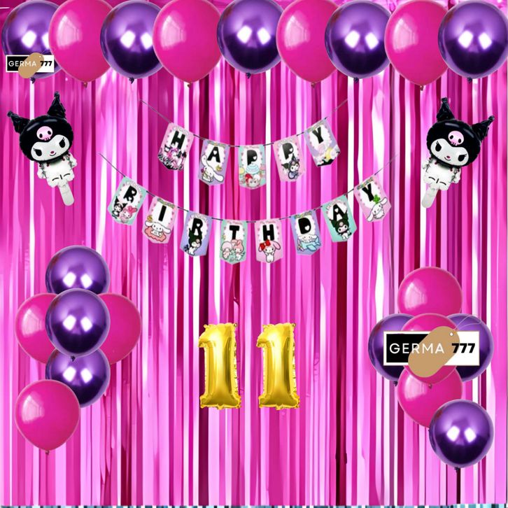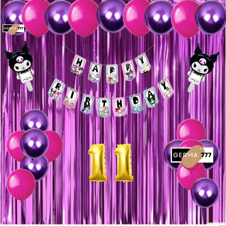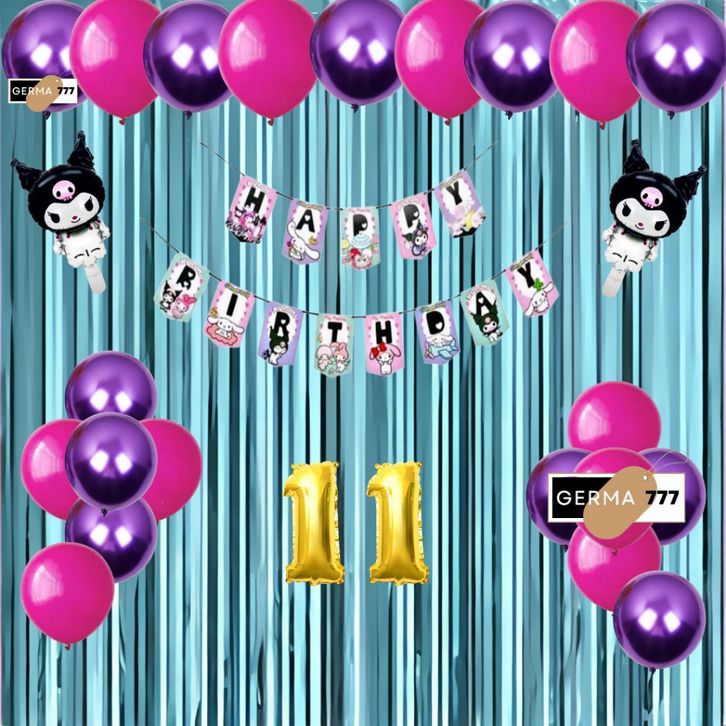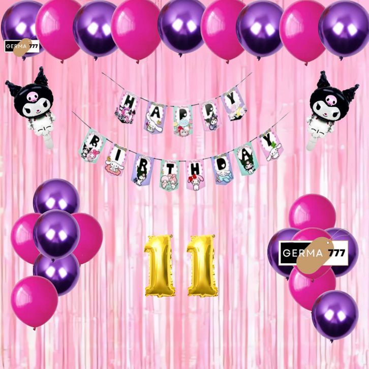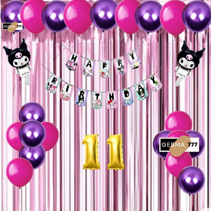 Dekorasi Ulang Tahun Anak Perempuan Paket Set Dekorasi Banner Happy Birthday Kuromi Balon Latex Ungu Pink