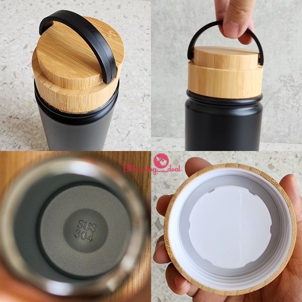 Tumbler Termos Stainless Steel Tutup Bambu dengan Handle 550ml (HN223)