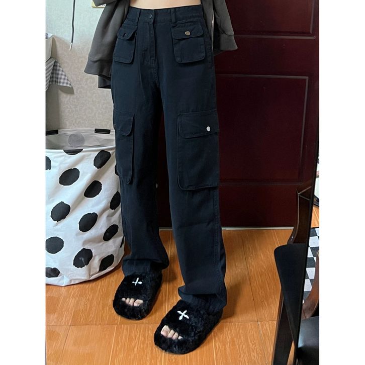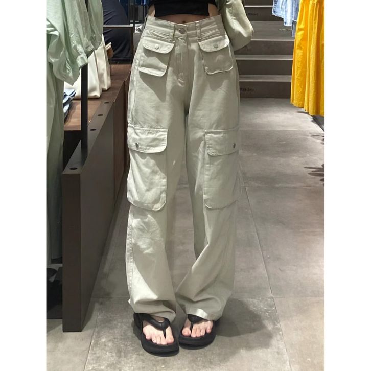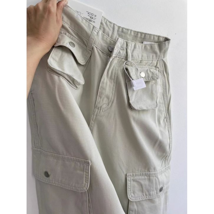 Cargo Denim Pasir Putih Highwaist Loose Celana Jeans Wanita Korea realpict Terbaru