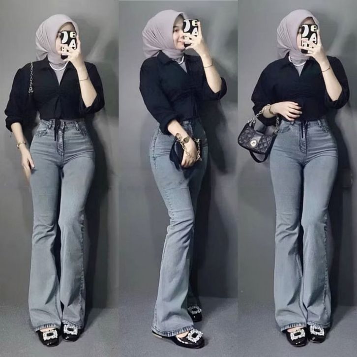Celana Cutbray Jeans Wanita Highwaist Strecht - HW Celana panjang wanita Cutbray Jeans Denim Korean Style Flared