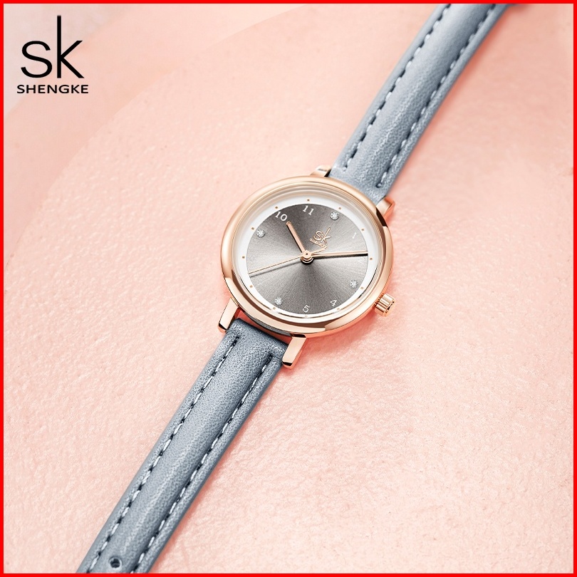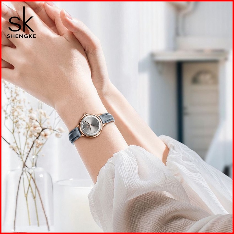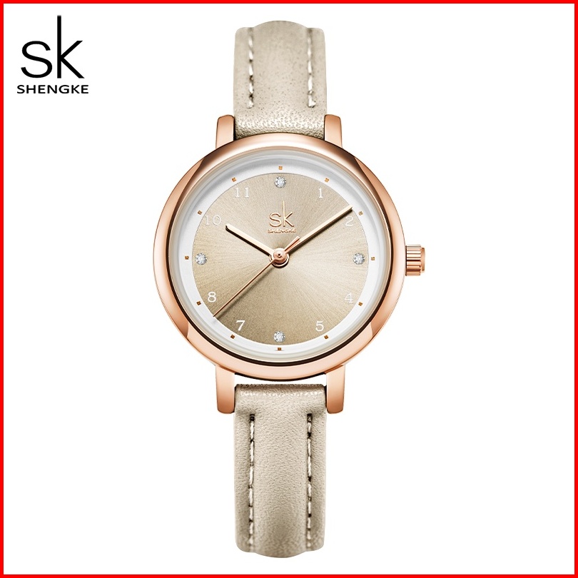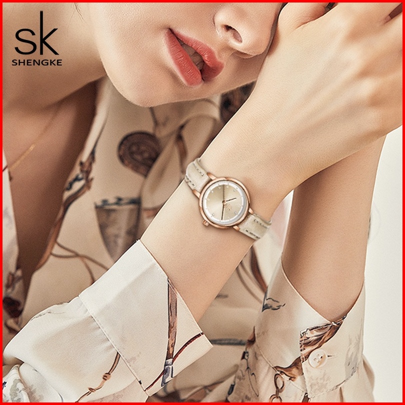 Shengke Jam Tangan Wanita Simple Elegan Leather Strap Quartz Movement Anti Air K9028