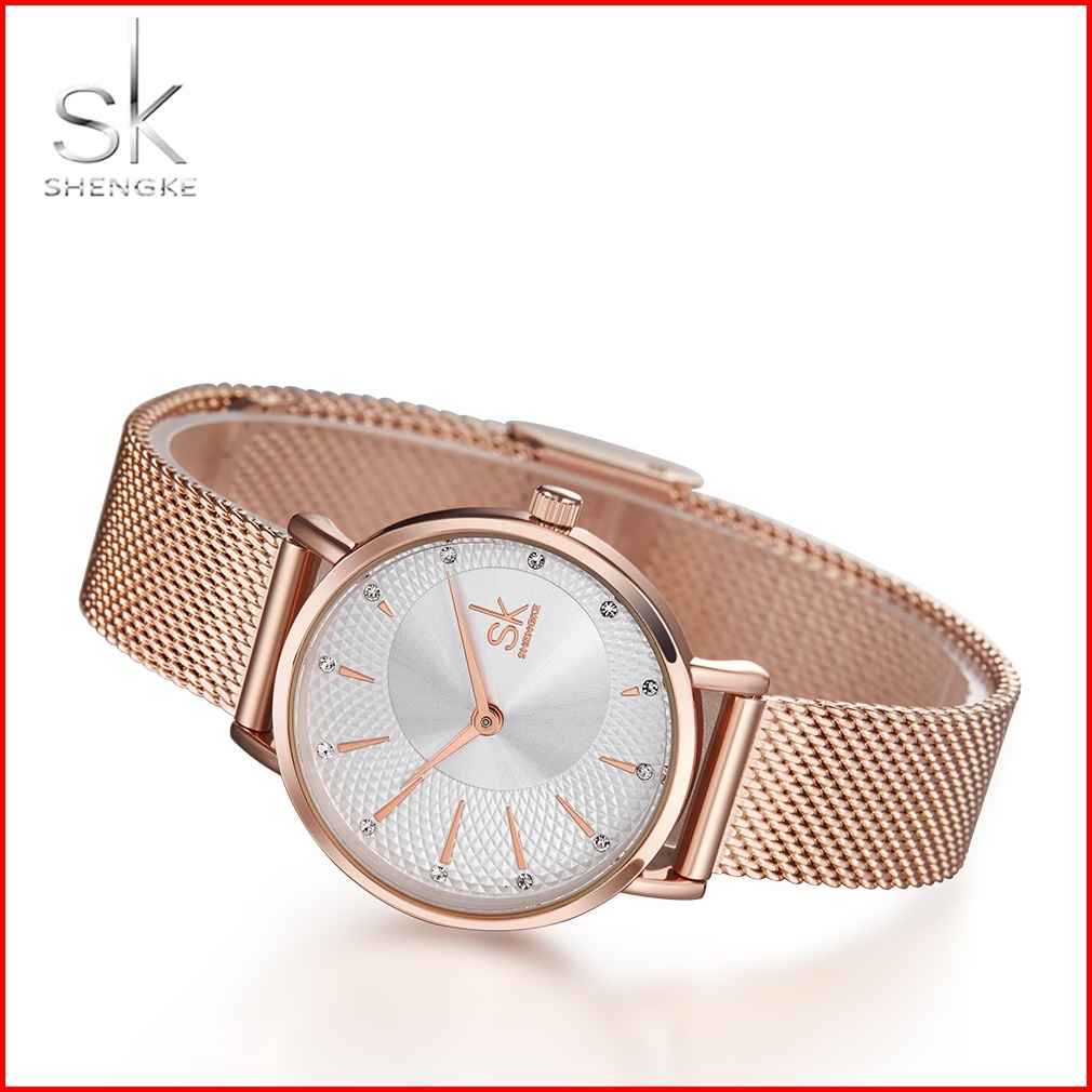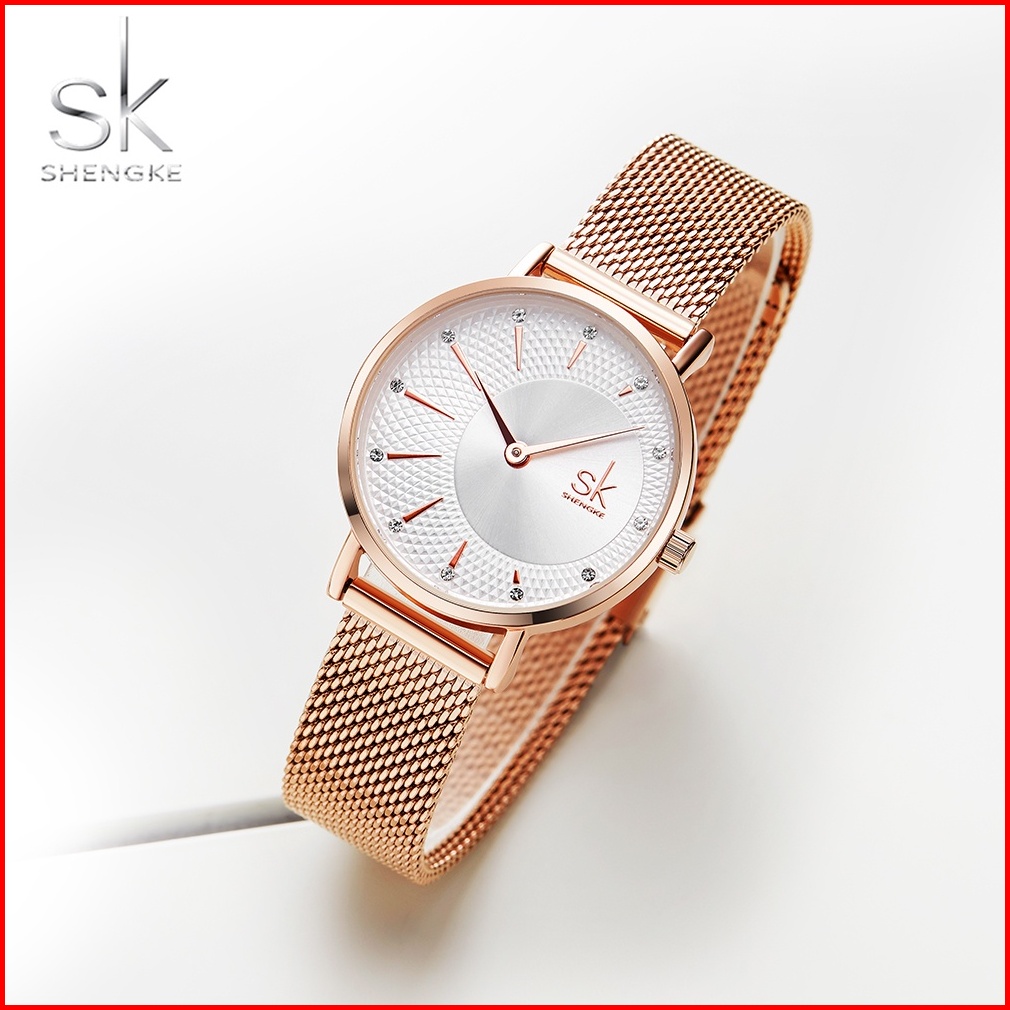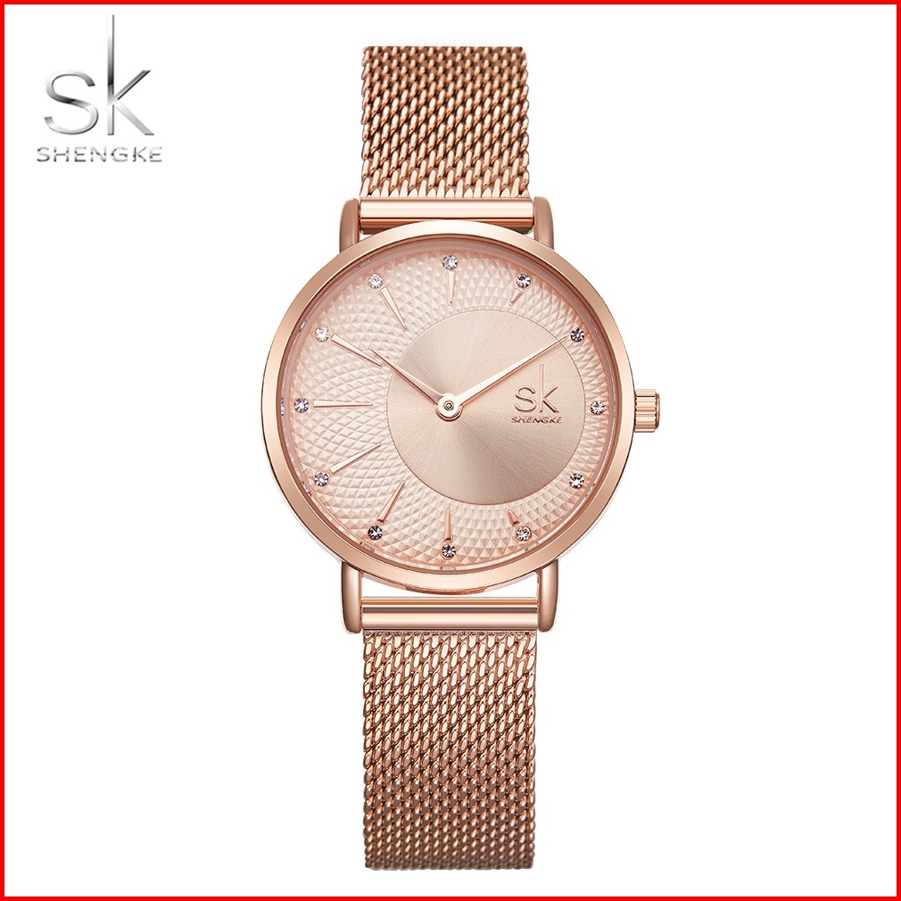 Shengke Jam Tangan Wanita Elegan Casual Stainless Steel Quartz Movement Water Resist K0093l