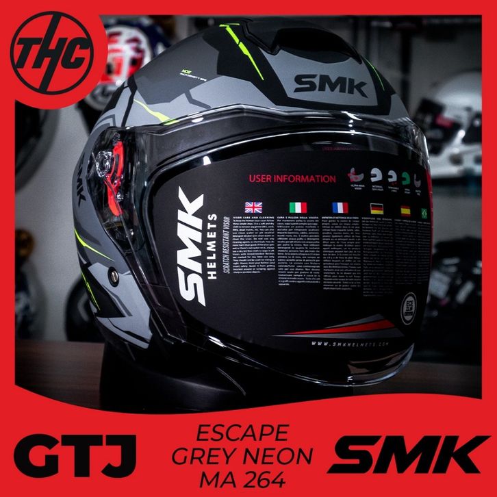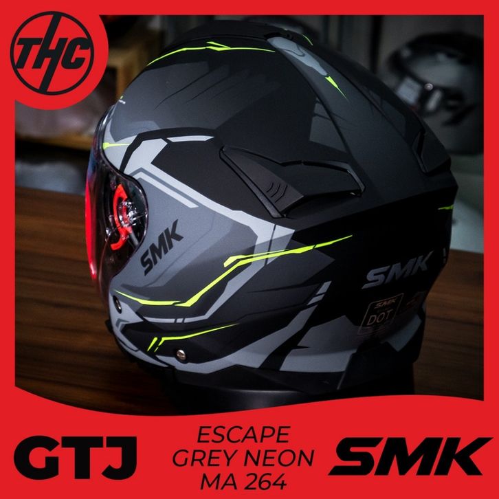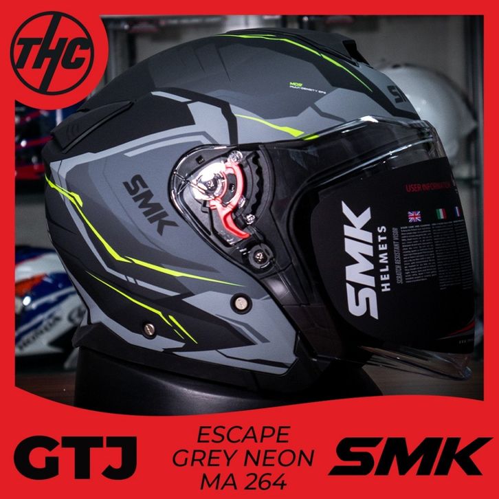 HELM SMK GTJ MA264 ESCAPE GREY NEON HALF FACE HELMET HELM SMK GTJ ORIGINAL HELM HALF FACE SMK GTJ ORIGINAL