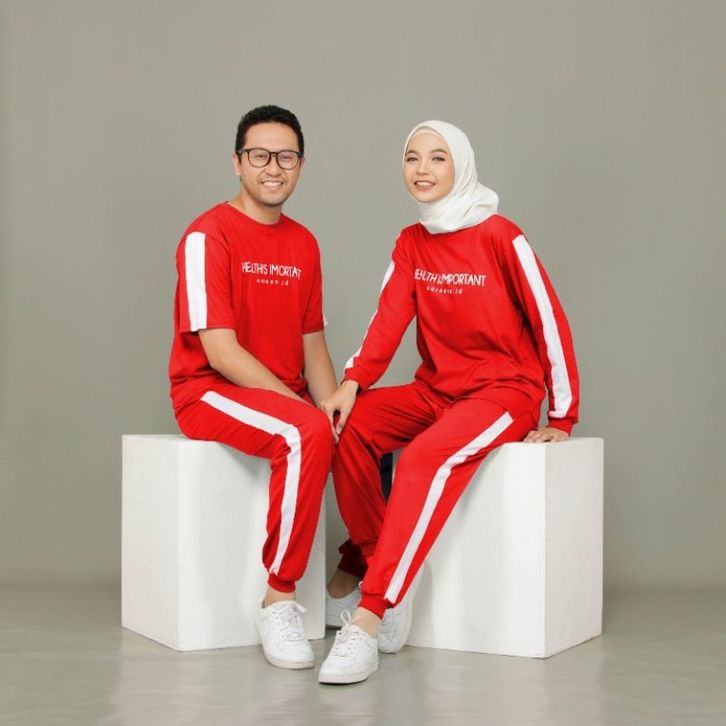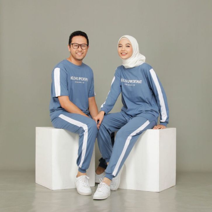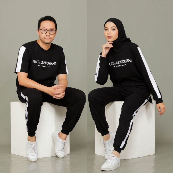 satu set Baju Olahraga Senam Wanita Pria Joging Muslim Oneset Sport Satu Set Pakaian Olahraga Kasual Stylish adem lembut