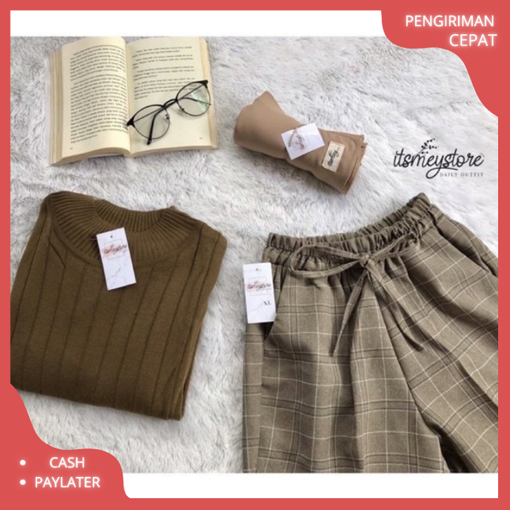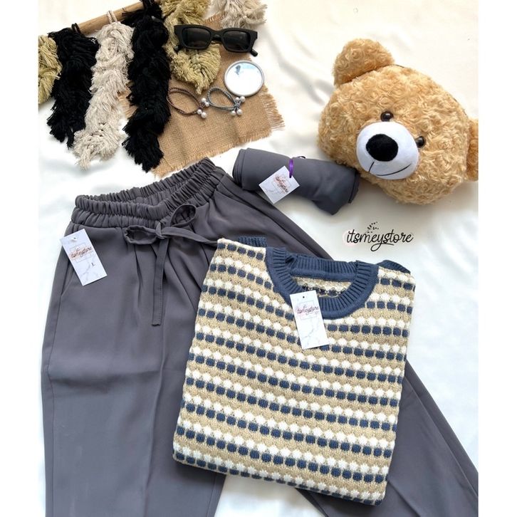 One Set Knit Wanita One Set Wanita Kekinian One Set Korean Style Setelan Baju Wanita Dewasa Jodie Set